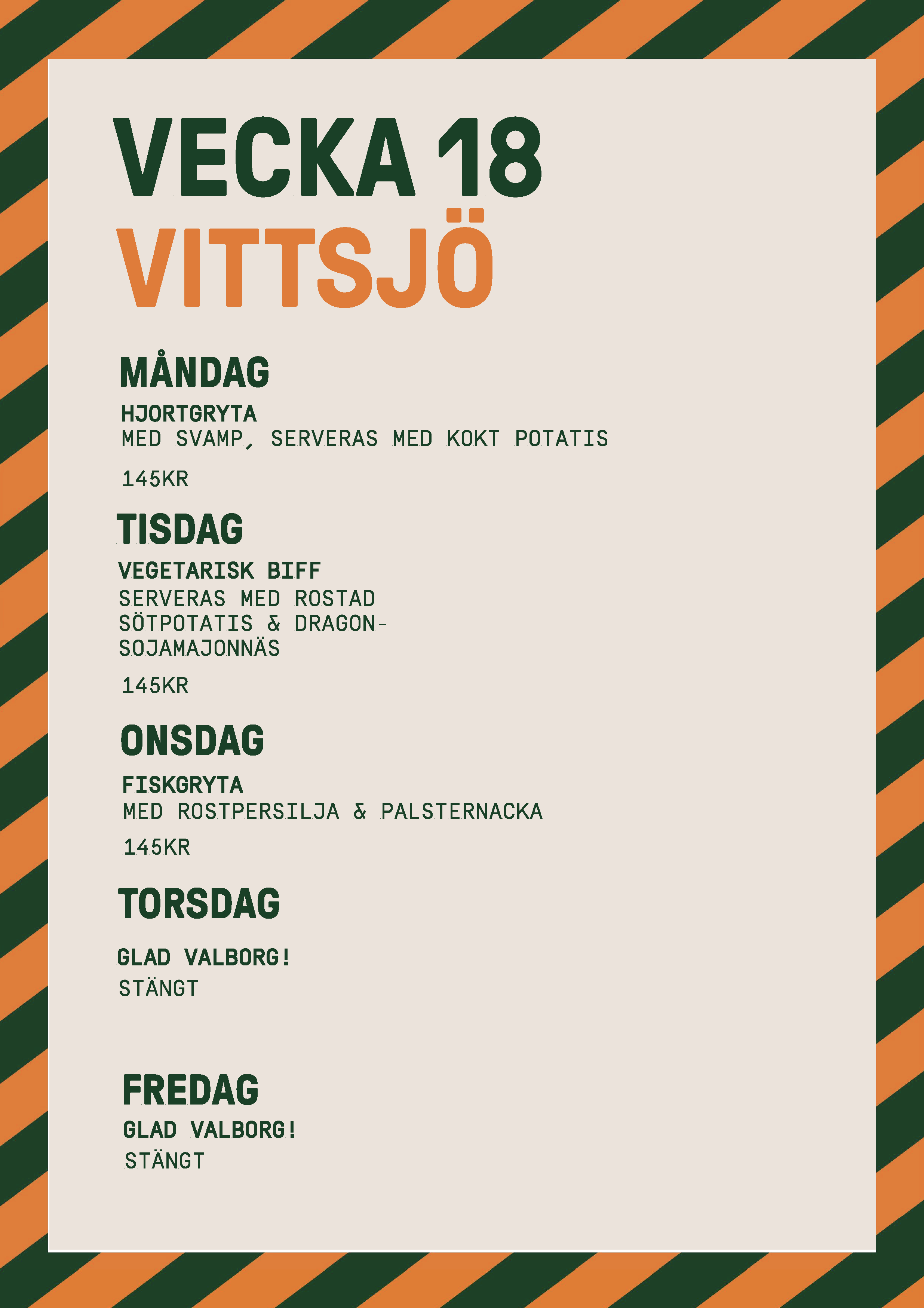 Det som inte kan odlas i Sverige köps alltid ekologiskt. Vi tar ansvar för hela kedjan, från inköp till servering, och arbetar konsekvent för att inget ska gå till spillo. Smak, kvalitet och omtanke om både människa och miljö styr varje beslut vi tar.